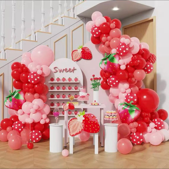 🍓 Berry Sweet Strawberry Theme 1st Birthday Balloon Decoration Setup 🍓