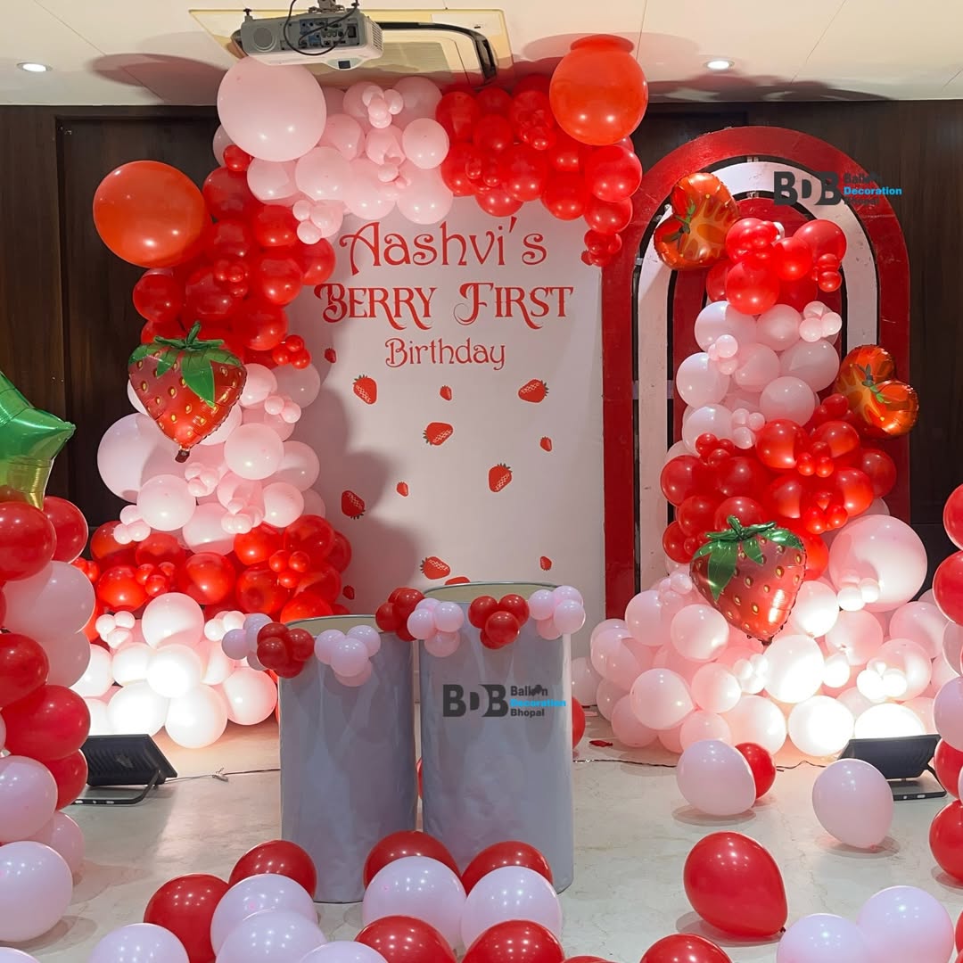 Celebrate your child’s very first birthday with a burst of color, joy, and sweetness through our Berry Sweet Strawberry Theme 1st Birthday Balloon Decoration Setup. This theme is specially designed to bring a playful yet elegant vibe to the celebration, making it perfect for baby girls and strawberry-themed parties.